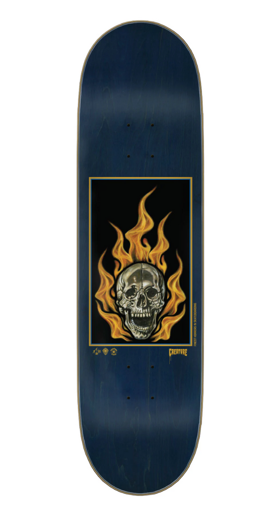 The Creature Bonehead Eternal offering burns into eternity on the affordable yet durable Birch construction. Call upon the straight 8" x 31.8" or sturdy 8.5" x 32.2" sizes and ignite the flame of shred.