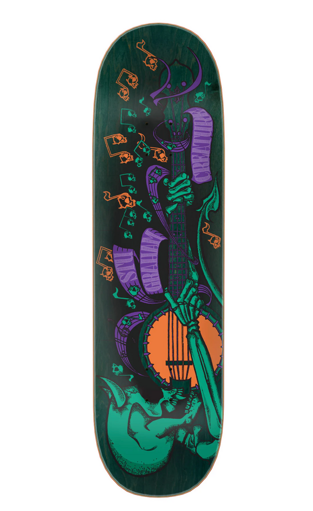 Creature Graham Stand Fast II It lives again! Stu Graham’s 9.125 x 32.98 ‘Stand Fast ll’ re-issue Pro 1-Off is back again for another tune. At the time of this gem’s original release, there was only one dude you could count on for a popsicle shape over 9” wide. Stu brought it to the table before all.. the Ogre don’t play! Artwork by Collin McInnes.