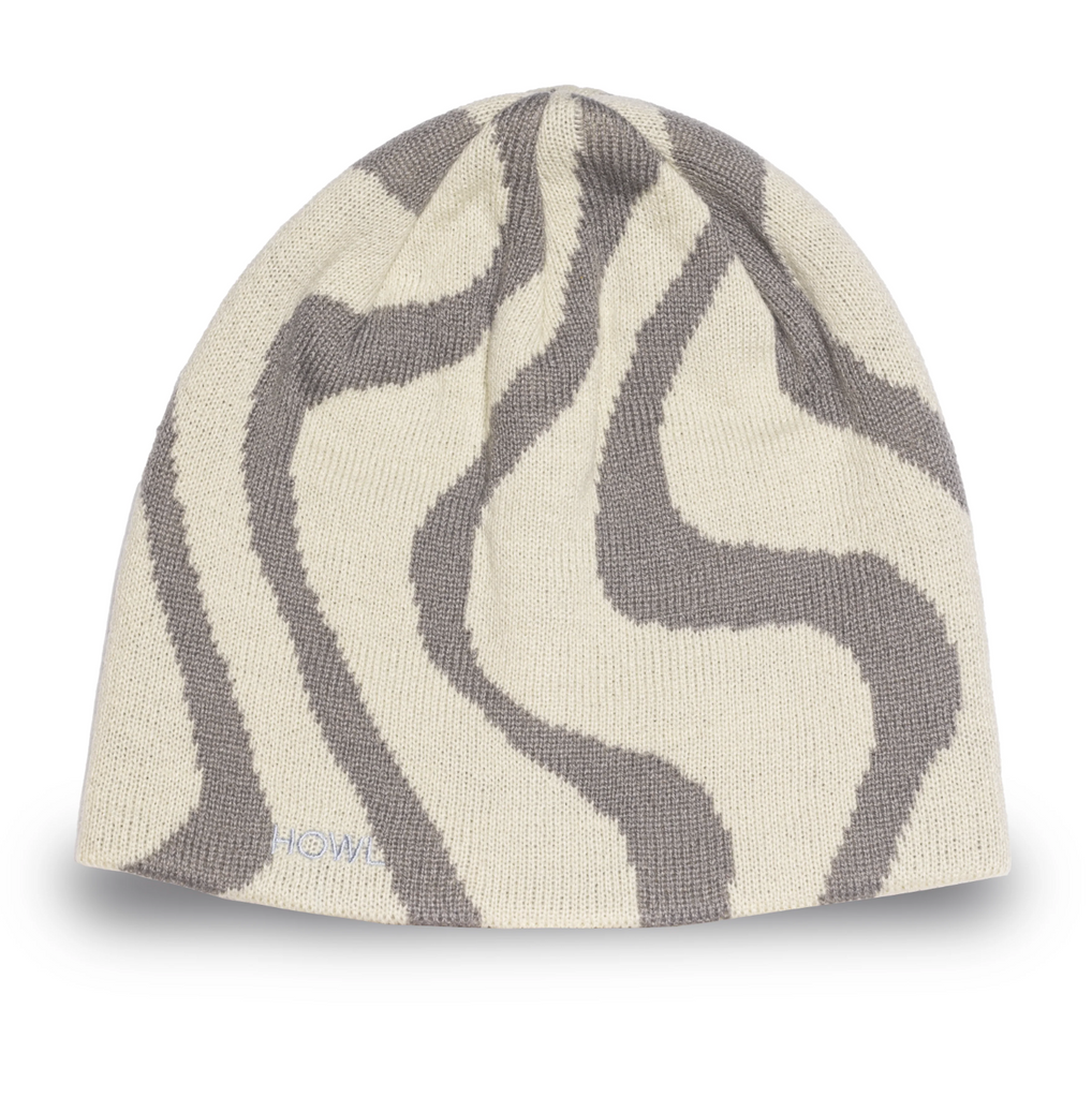 Acrylic flat knit with two color graphic jacquard with no cuff, seamless construction.