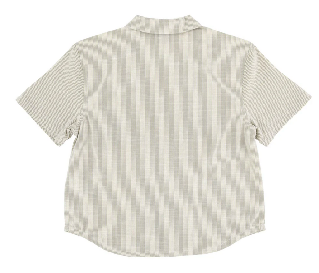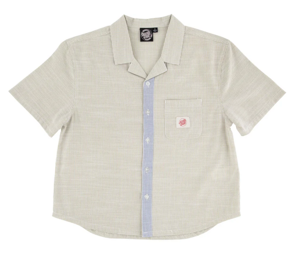 The Santa Cruz Opus Dot Lounge women's regular fit button up lounge shirt features front chest patch pocket, small woven Santa Cruz logo on front pocket, front button closure, and accent color front placket.