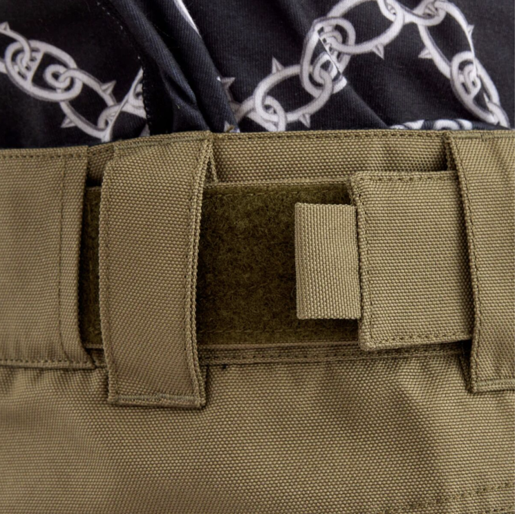 • Adjustable hook-and-loop + elastic tabs at waistband