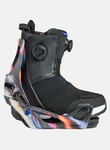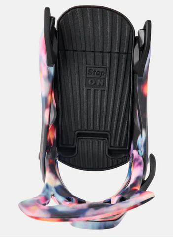 Step up to Step On®. The women's Burton Step On® Re:Flex Snowboard Bindings pair an intuitive boot-to-binding connection with all-mountain performance. Three connection points, two at the toe and one at the heel, deliver unmatched simplicity, security, and board control.